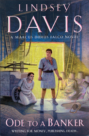 In Ode to a Banker, Lindsey Davis tackles both the publishing and the banking industries in ancient Rome. Aurelius Chrysippus, a tasteless Greek who owns a Scriptorium, approaches Marcus to see if he would like to self-publish his poetic scribblings. Outraged that he would be expected to pay the costs of the “printing” himself (ah, vanity publishing!), Marcus storms away, only to find out that the odious Greek must have outraged someone else that day too. Aurelius Chrysippus’ corpse is discovered beaten to a pulp with the finial of a scroll shoved up his nose, and Petronius Longus (chief of the vigiles) subcontracts Marcus to investigate. As he interviews disgruntled authors, an old first wife, a young second wife, and a spoiled son, Marcus discovers that Chrysippus had fingers in more than one pie. He also owns a bank, entitled the Golden Horse, and his shady business deals there may have run him into more trouble than his lack of literary taste at the publishing house.