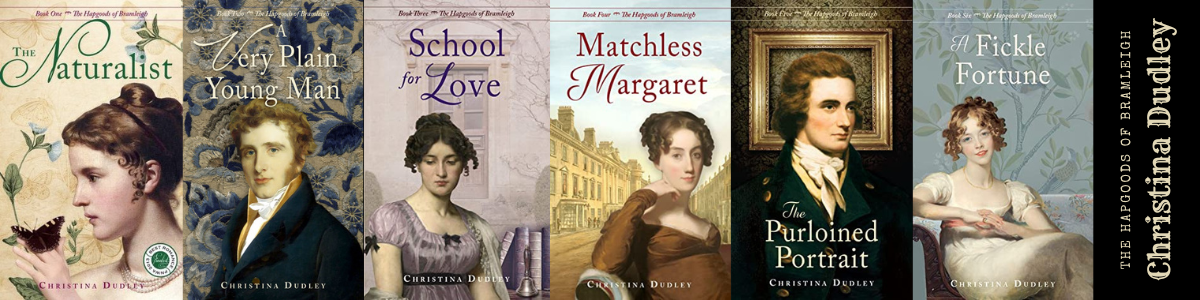 This six-book Regency series follows the story of the Hapgood family as several country misses find love amidst unconventional circumstances. With elegant prose and clever dialogue reminiscent of Georgette Heyer, each book is a delight to read. Billed as “traditional Regency romances,” the books contain more realism than many modern-day Regency pastiches, painting the lives of a genteel family of four girls (similar to Jane Austen’s Bennet family) who must find husbands with small marriage portions and their father’s estate entailed to the nearest male relative. Most of the titles do not contain a real “villain,” but the exigencies of fortune and circumstance conspire to throw monumental obstacles in the way of each couple before they can reach their happily-ever-after.